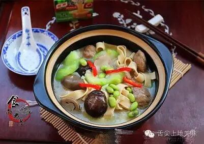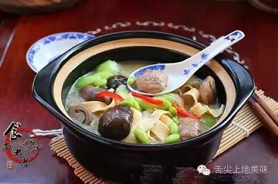 1.备好所有食材 2.香菇、草菇、分别洗净,毛豆浸泡片刻,搓干净外衣 3.牛肉丸洗净对半切开,豆干洗净切丝 4.水瓜去皮洗净,切滚刀块 5.烧开适量水,将豆干丝焯煮一下,捞起冲洗干净 6.草菇和香菇也焯一下水 7.热锅,放适量油,下葱头爆香 8.倒入毛豆翻炒片刻 9.加入草菇、香菇 [转载]熟悉的滋味—【牛肉丸杂菜锅】 10.倒入牛肉丸,继续翻炒 11.加上适量清水,水量要没过食材表面 12.倒入豆干丝 13.加入浓汤宝 14.搅拌均匀、大火继续煮沸 15.遮上锅盖大火煮15分钟 16.最后倒入水瓜,大火煮沸 17.水瓜煮软后、调入盐 18.搅拌均匀,铲起盛入煲仔中即可食用 [转载]熟悉的滋味—【牛肉丸杂菜锅】 食尚小贴士: 1、毛豆相对难熟一点,要先爆炒片刻,水瓜煮沸即熟,最后放入,可以保持色泽鲜亮和口感鲜嫩;2、草菇和香菇买回后洗净,烹调之前最好焯一下水,这样吃的健康,减少残留物;3、豆干焯水后可以去除豆腥味。