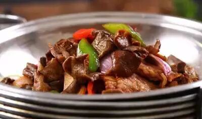 野生苔蘑300克,五花肉50克,红绿尖椒、洋葱块20克葱姜面各5克,大料面2克,山西陈醋10克,东古酱油10克、耗油5克,老抽5克。