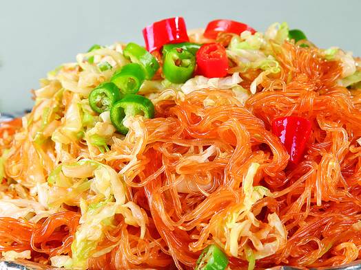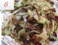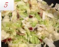 5. 放入包菜,炒至略微出水后,放入粉丝。