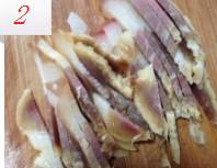 2. 五花肉切丝,我用的咸肉,味道也不错。