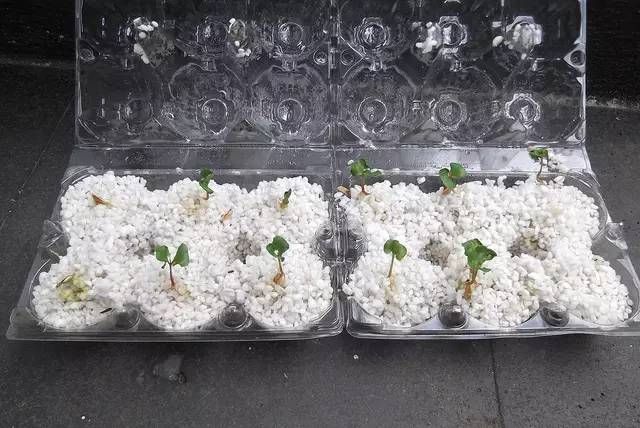 3 等过了两天后,温室里的小芽儿又长大了一点,此刻就能为移种到花盆中做准备了。