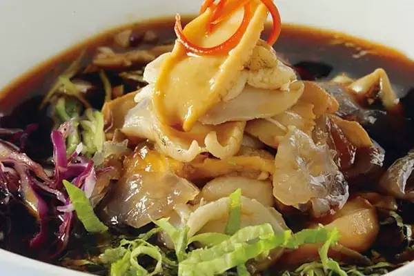 主料:蛰头40克,海肠30克,扇贝肉40克,鲍仔40克,海螺40克