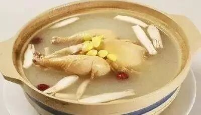 食材:竹丝鸡1只,猪瘦肉150克,黄耆30克,党参30克,去核红枣10个,生姜3片。