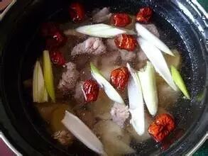 1.取新鲜羊骨,洗净敲碎,加水煎汤,高火约20分钟。