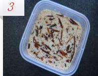 2.颗粒辣椒碎(你也可以直接选择辣椒面,那样更细腻些)、白芝麻、五香粉混合后