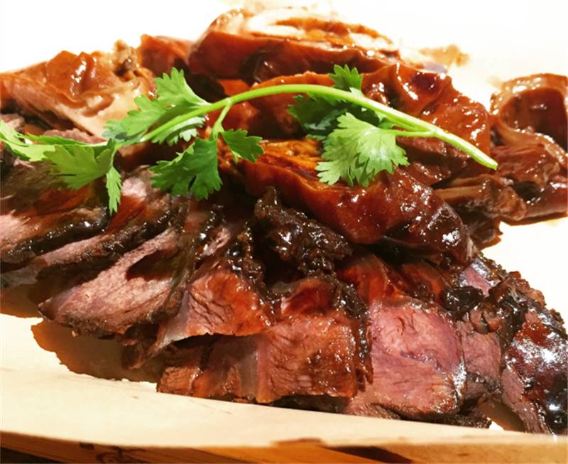 双拼里面是大肠和牛肉,牛肉有筋有肉,非常有嚼劲。杭州人爱吃甜,所以这道卤味的口味有点偏甜,却恰恰击中了杭州人的胃。
