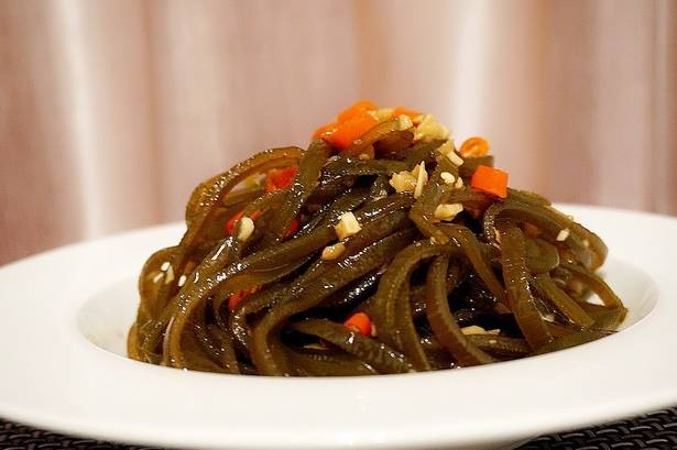海带味咸,性寒,是化痰、消炎、平喘、排毒、通便的理想排毒食物。海带不仅有助于清除体内的积热,还可以对付因出汗过多出现的体力透支,秋后尤其适宜。海带中含有的多种营养物质还具有辅助降低血压、降低血液黏稠度的作用,对心脑血管疾布者大有裨益。