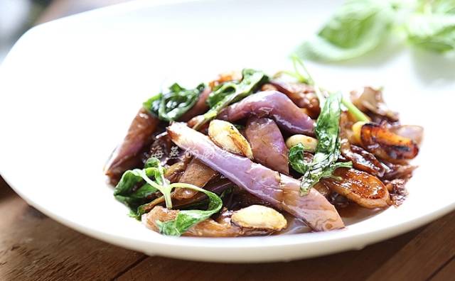 用料:茄子5根;九层塔适量;大蒜少许;酱油适量
