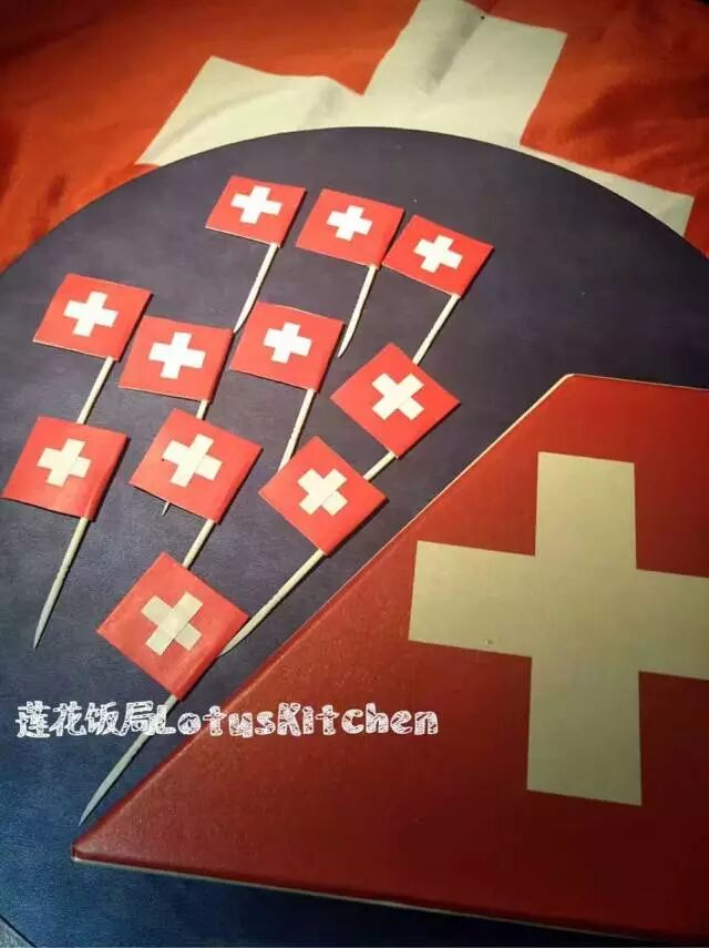 本期瑞士餐前奏,我们诚意满满,莲花用1个小时编辑菜单,2个小时准备旅游分享的资料,还熬夜做瑞士小国旗,漂亮吧~
