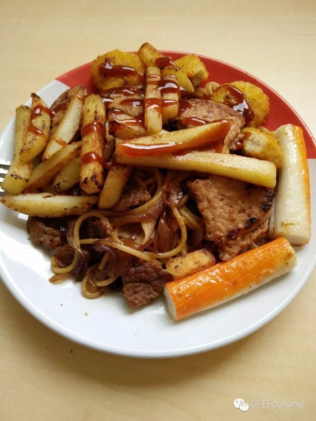 我在炒牛肉之前先煎的这些速冻食品,因为可以少刷一次锅。。。。。