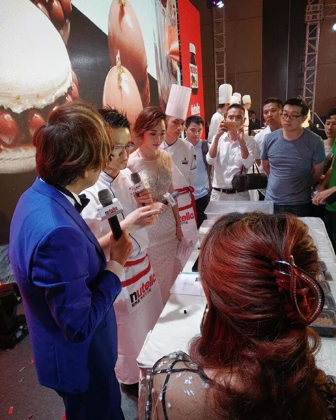活动现场邀请了六位广州星级酒店行政主厨,以能多益榛果可可酱入馔,创作创意甜品料理。
