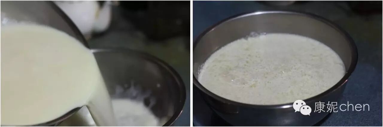 3最好就是把内酯溶液放在大容器里,将豆浆冲入内酯溶液