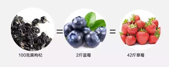 平均每100克黑枸杞中花青素的含量相当于2斤蓝莓,或者42斤草莓中花青素的含量。所以黑枸杞是迄今为止发现的花青素含量最高的天然野生果实,号称“花青素之王”。