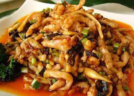 备注:此菜色泽淡雅,虽不加芡,也有透明薄汁,不放味精,自然鲜美。由于大火炒成,吃口很嫩,仔姜、辣椒、葱白脆肥,肉丝融入仔姜味,格外诱人。