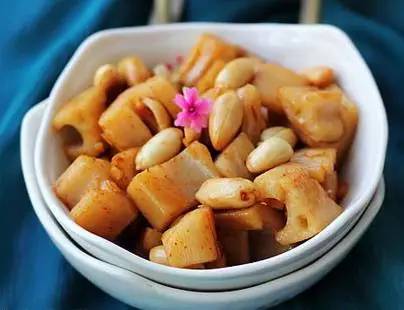 3)将藕丁倒入锅中煸炒2分钟,再依次倒入醋、糖、少许水和盐,继续加热5分钟,撒一点鸡精即可。