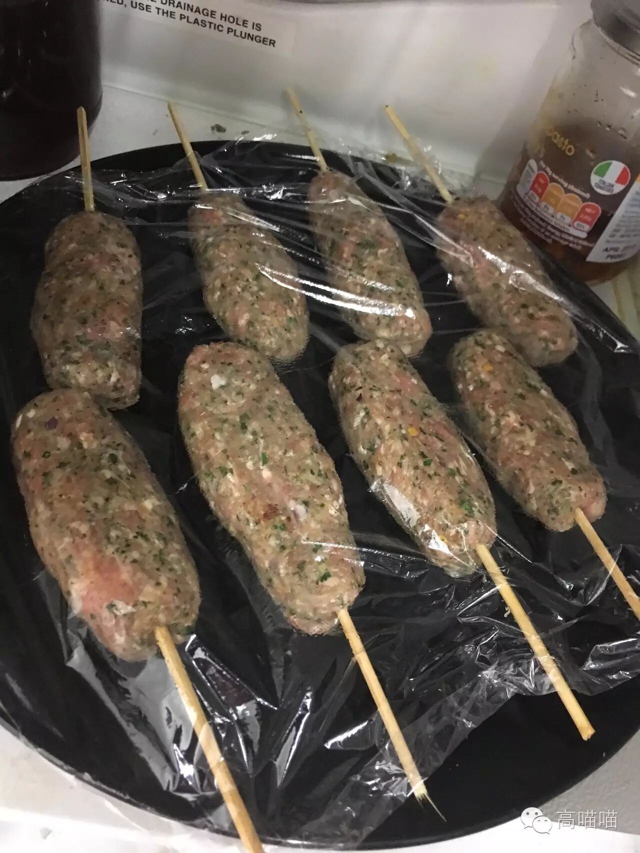 再然后把这坨肉分成很多份,捏成长条或者搓成丸子,我觉得长条形的比较好,适合家里做。丸子的话,要是没有户外的BBQ,烤的过程比较痛苦。嗯。是不是很像肉冰棍?