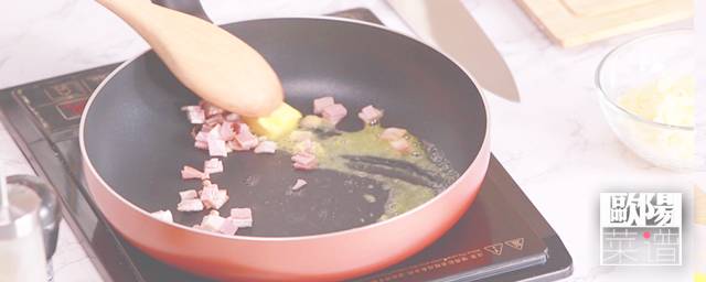 将煸炒好的培根倒入土豆泥中,加入融化的黄油,黑胡椒和盐调味并搅拌均匀