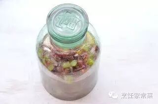 将拌好的葡萄连汁带肉全部装进无水无油干净的玻璃瓶里,装约7分满密封好室温下保存。