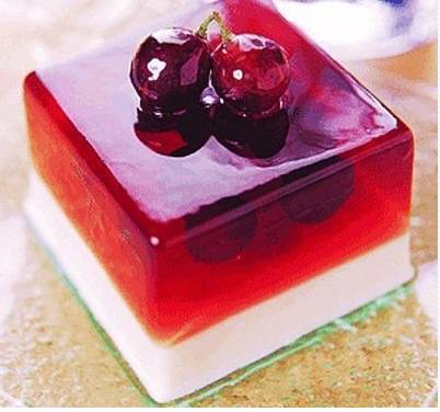 3.液体晾凉后取一半放入模型内,冷藏成型。