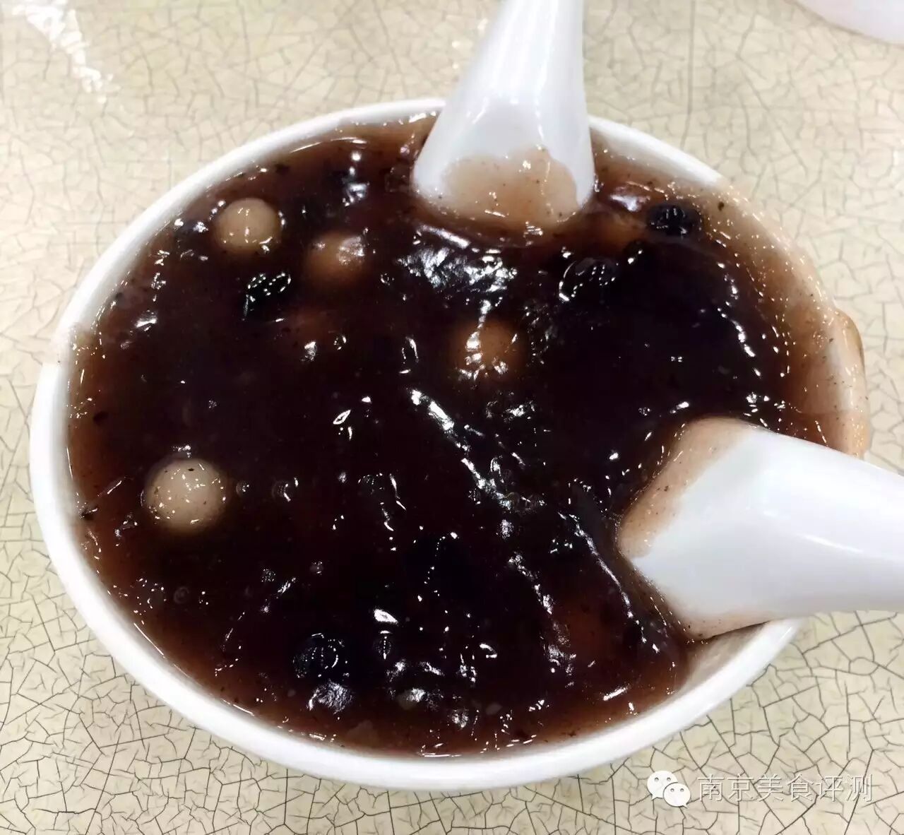 南京特色的甜食首推桂花赤豆元宵,比较有名的店铺是位于夫子庙内的莲湖糕团点。桂花赤豆元宵主料有红豆,小元宵,藕粉,桂花酱,这家店的赤豆元宵貌似红豆加的太少,藕粉过多,导致成品过于黏稠,而且口味过甜,偏腻。