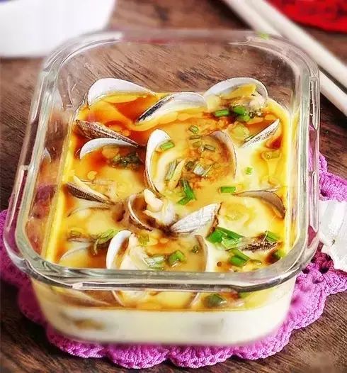 鸡蛋3个、花蛤200克、姜适量、小葱适量、香油适量。