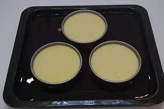 10. 倒入模具内,放进烤盘,烤盘放入8分满的水,入烤箱中层上下管150度烤制50分钟左右即可