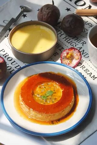 焦糖百香果布丁,闻起来是百香果味道,吃起来又混合了焦糖的焦香,味道真的很不错哦!