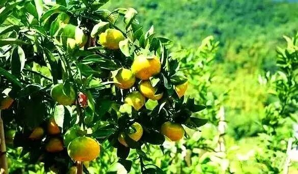 黄绿相间的橘子挂满枝头,笑迎四方宾客。