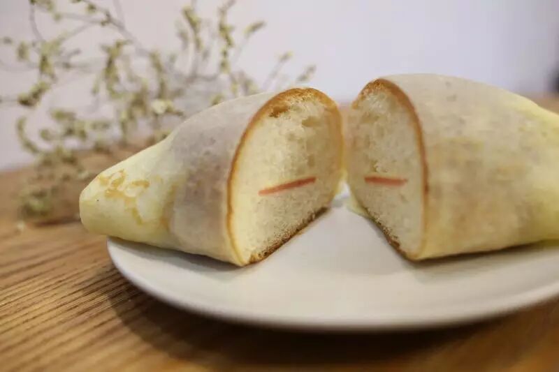 盐焗面包一向是店里的爆款,第一次吃的话,你永远猜测不到里面的夹心是什么。小编今天帮你扒开了它神秘的外表,里面其实是一层火腿肠和芝士,融合面包口感很好。