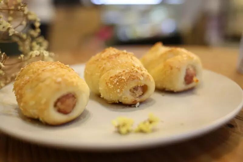 迷你热狗只要2元一个。最里面夹着一根小热狗,外面是一层面包,总体甜咸度刚刚好。外面撒着一层椰子碎片,闻着就很香!