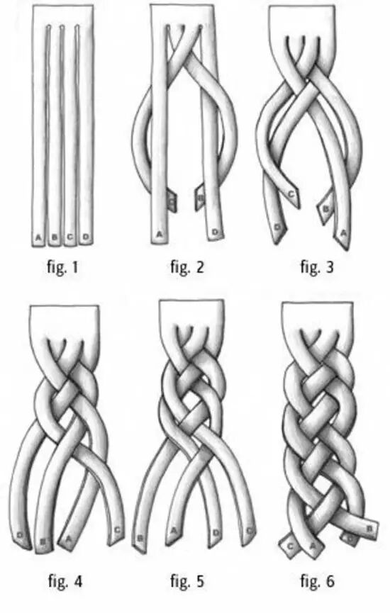 头发分成4股,记住交叉的顺序是1x3、2x4,然后是1x4、2x3,只要记住这个规律就不会乱了。