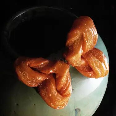 糖耳朵又称蜜麻花,是北京小吃中常见名品,又称糖耳朵,因为它成形后形状似人的耳朵得名。
