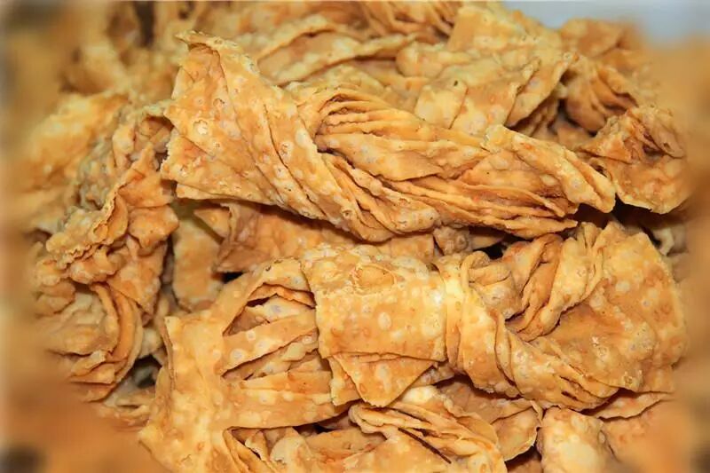 据《天桥小吃》作者张次溪先生说:“旧天桥有专门卖小炸食的店家,如面炸不盈寸的麻花排叉,用草纸包装,加上红商标,时过年送礼的蒲包,又是小孩的玩物。”
