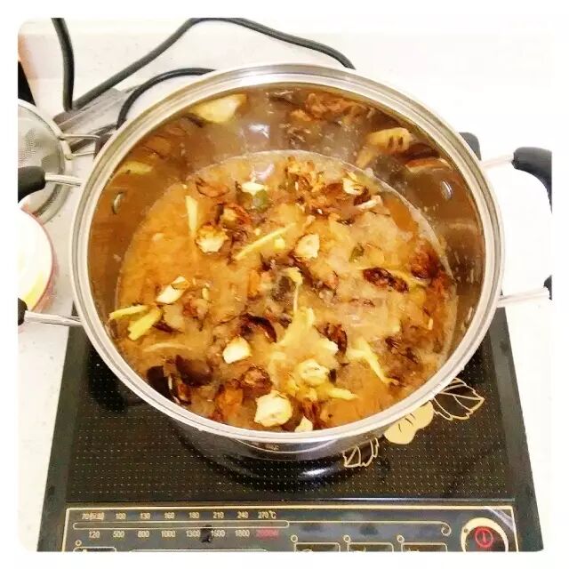 用大火将其煮开。梨和姜的香味散发在空气中了~