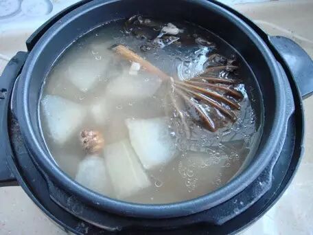 3.适量的水煮滚,放入所有材料,大火煮十分转文火煮一小时半,加糖、盐调味即可饮用。