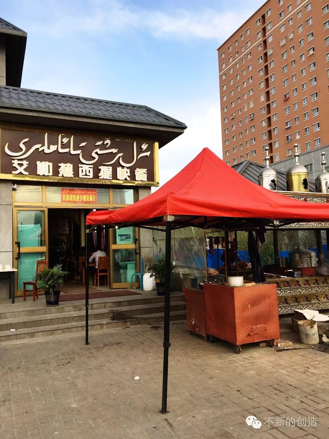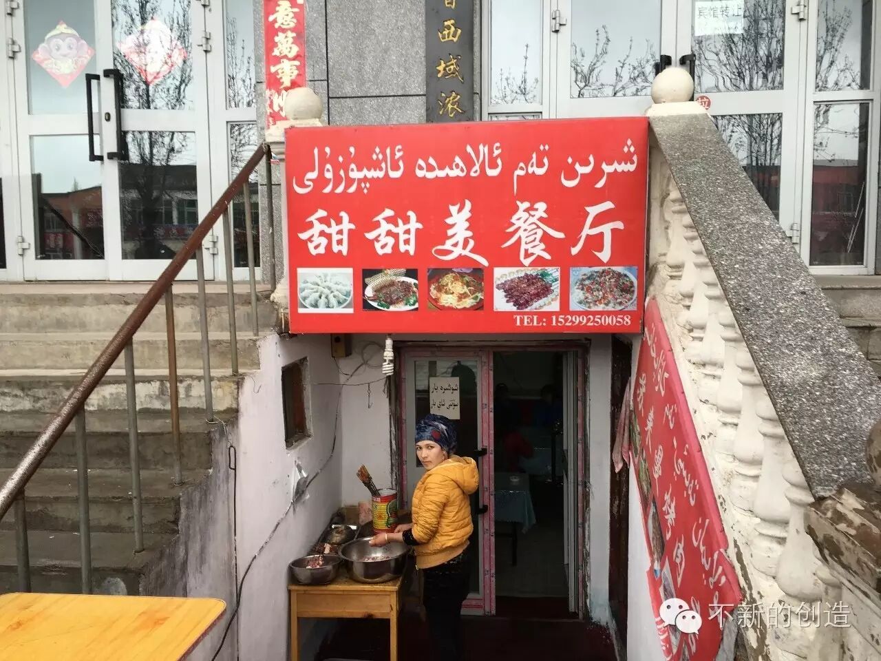 雨中回到宾馆,下午因天气糟糕就不安排景点了,终于有时间好好睡一觉。但午饭晚饭总是要吃的。一群人外出觅食,首先来到以下这家民族团结进步模范餐厅解决午餐。