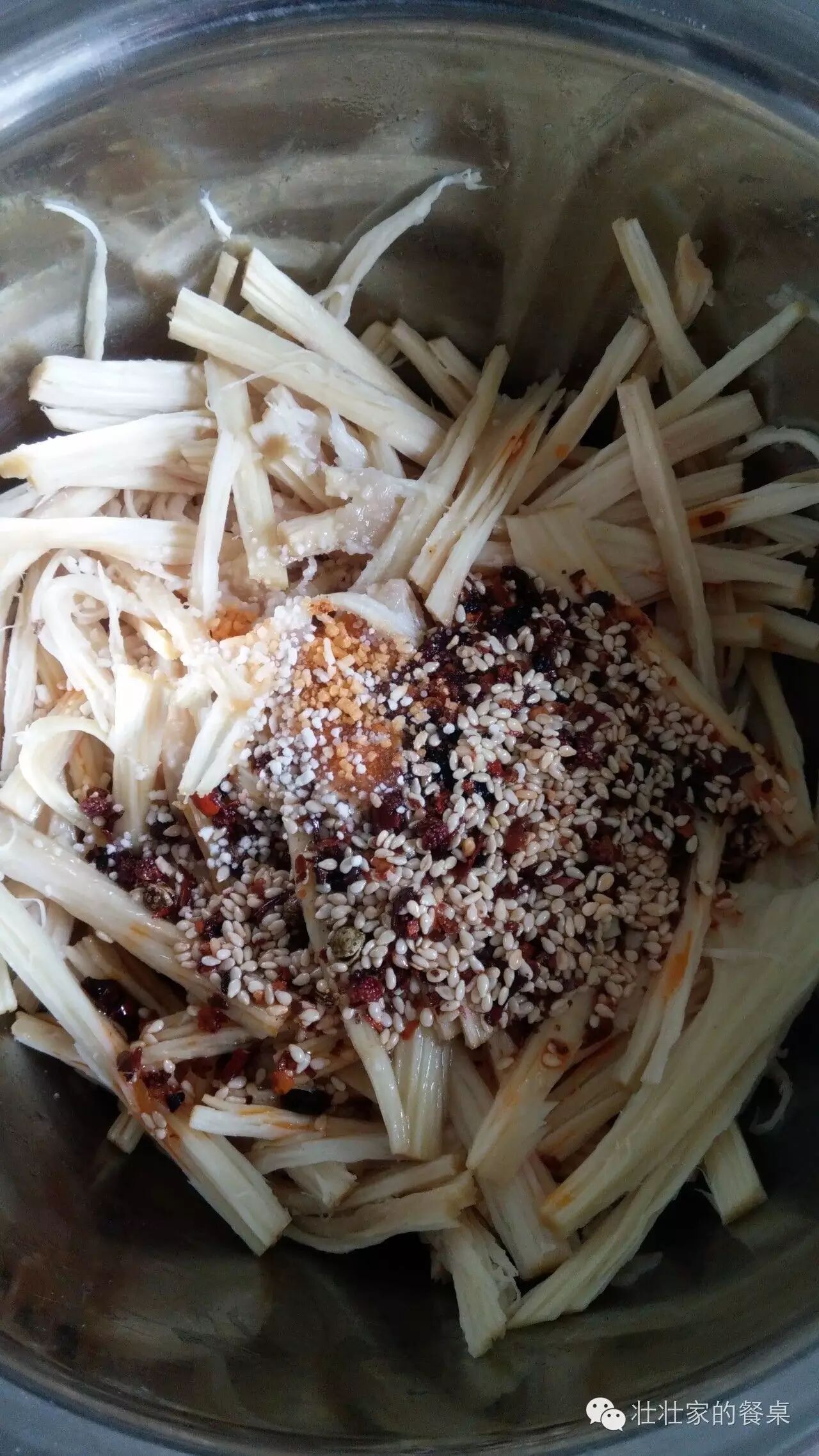 加入红油,花椒油,芝麻,盐,糖拌匀即可。佐酒美极,磨牙必备。