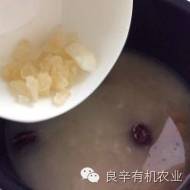 5.粥煮至开花的时候加入老冰糖。