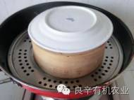 8.盖上棕叶,扣是一个盘子,防止棕叶翘起,上蒸锅蒸1 小时左右或用高压锅蒸20分钟左右即可