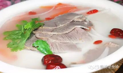 阎家羊肉汤的特点是:用鲜羊肉,当天用肉,当天宰羊;香料齐全、量大。用胡椒粉而不用辣椒,咸淡适口,汤味鲜美。