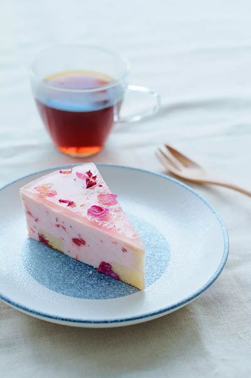 【玫瑰芝士蛋糕】材料:8寸戚风蛋糕1个、奶油奶酪500g、黄油220g、糖霜75g、玫瑰花瓣适量 做法: 1、烤好的蛋糕倒扣,待冷却后脱模。2、各种食材称重,玫瑰花瓣洗净晾干。3、黄油隔水溶化。4、加入软化的奶油奶酪。5、用打蛋器搅拌,再加入糖粉。6、搅拌成无颗粒细滑的奶酪糖霜。7、蛋糕切成两片,取适量奶酪霜均匀抹在夹层。8、然后盖上另一片蛋糕,表面和四周涂奶酪霜抹匀。9、取适量奶酪霜装入裱花袋中。10、从中心向外旋转挤圈,在蛋糕表面均匀挤满11、侧面一圈装饰玫瑰花瓣即可。