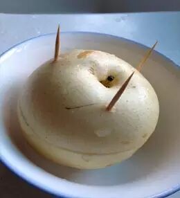 4.蒸半小时后,一碗甜香扑鼻的冰糖炖雪梨就做好啦!