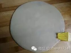 5.没有专用的锣锣我用了两个披萨模具,用刷子均匀的刷上油。