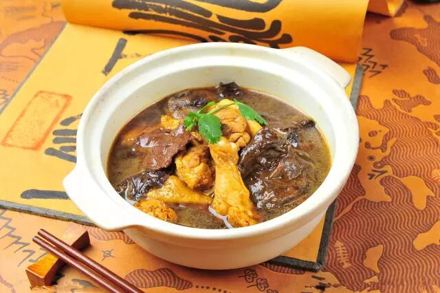 11.烧开,撇去浮沫,再转中火炖至鸡肉滑软<br>期间要偶尔翻动几下,以免鸡肉粘锅,也能让味道融合的更均匀