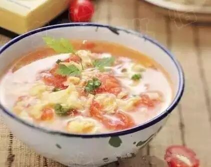 2. 锅中放入3碗水,放入西红柿碎块多煮一会,放盐、胡椒粉调味。