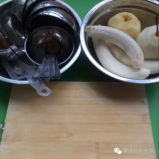 当然,活动前要先看老师制作一次。将苹果、梨、香蕉洗净、削皮,一只手抓住水果,一只手拿水果刀,把水果切成小块,将小块的水果装入碗中,放入沙拉酱,搅拌均匀就完成啦!
