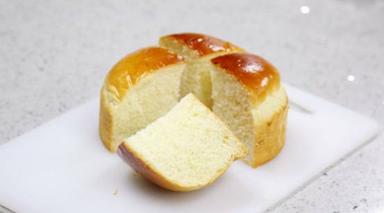 面包配料:高筋面粉270克,细砂糖30克,牛奶165克,鸡蛋30克,黄油30克,盐3克,干酵母3克。