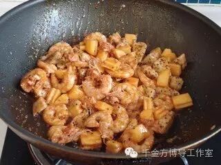 【原料】:大虾300g、火龙果75g、苹果75g、葱适量、姜适量