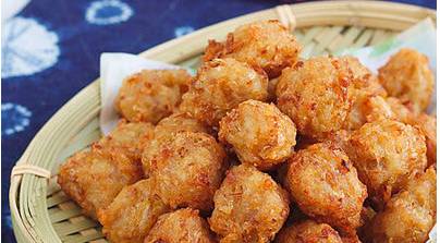 9、中小火将丸子炸到金黄色捞出即可