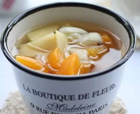 做法:苹果洗净,切块备用。山药、麦芽、芡实洗净与苹果一同入锅,加适量水,大火煮沸,小火熬煮1.5小时。